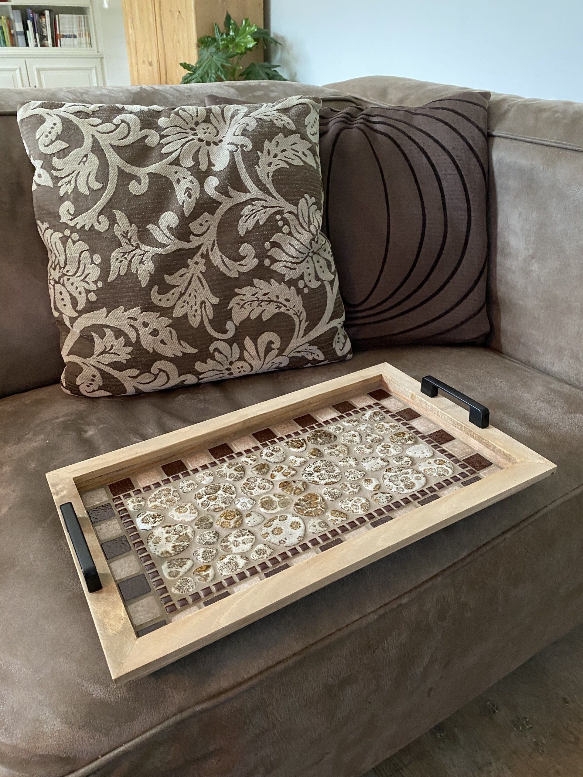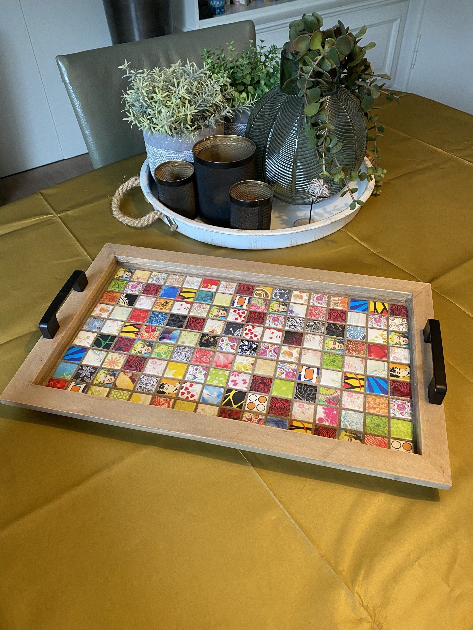 ❃ Dienblad: hout met keramiek stenen